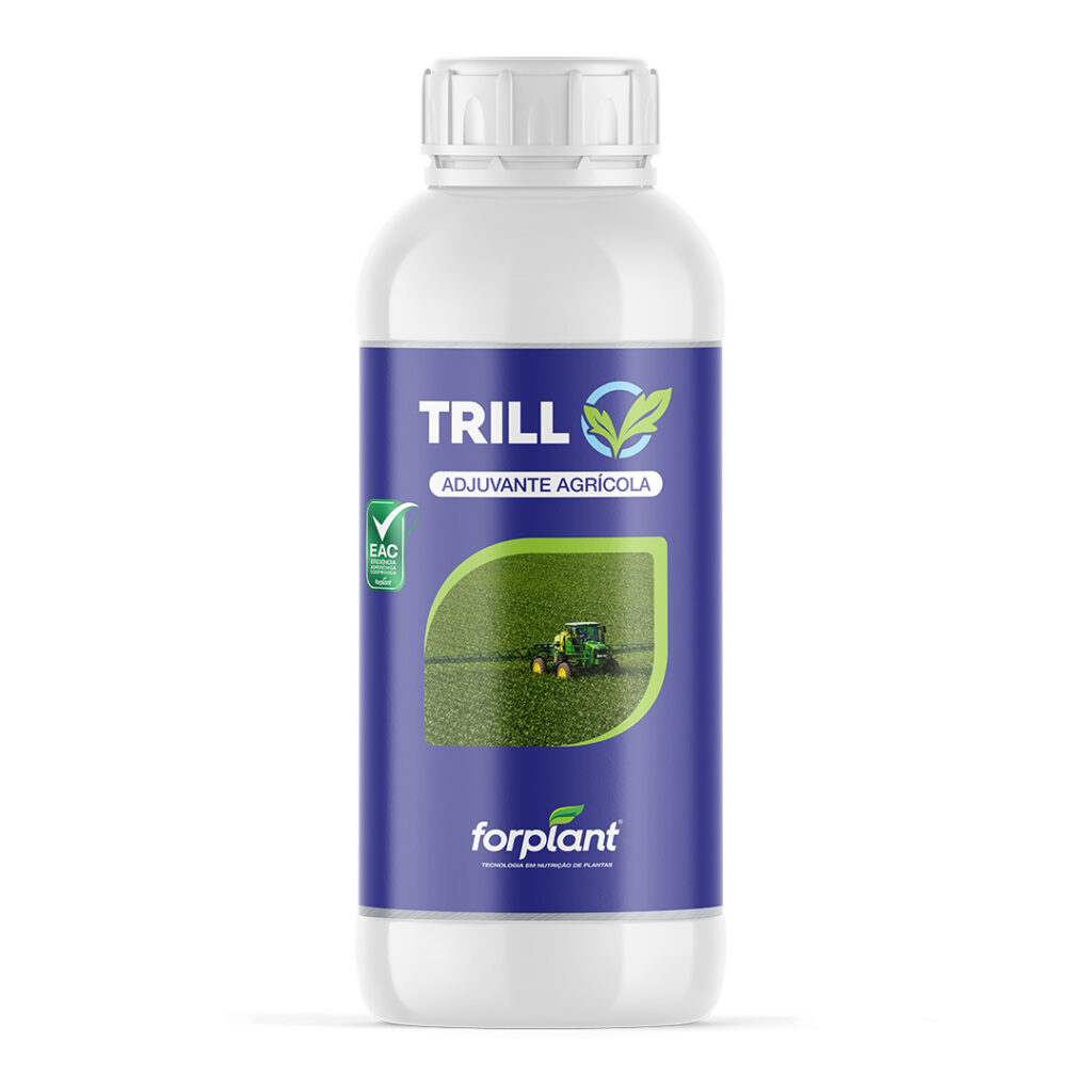 TRILL é um adjuvante que traz em sua composição surfactantes, tensoativos e quelantes com a finalidade de redução da deriva, redução de pH, pulverização mais uniforme, melhor controle de espuma e aumento da aderência das gotas, facilitando a aplicação e minimizando possíveis problemas inerentes ao processo, melhorando a característica e qualidade de aplicação e aumentando a eficácia dos produtos ao qual é adicionado.